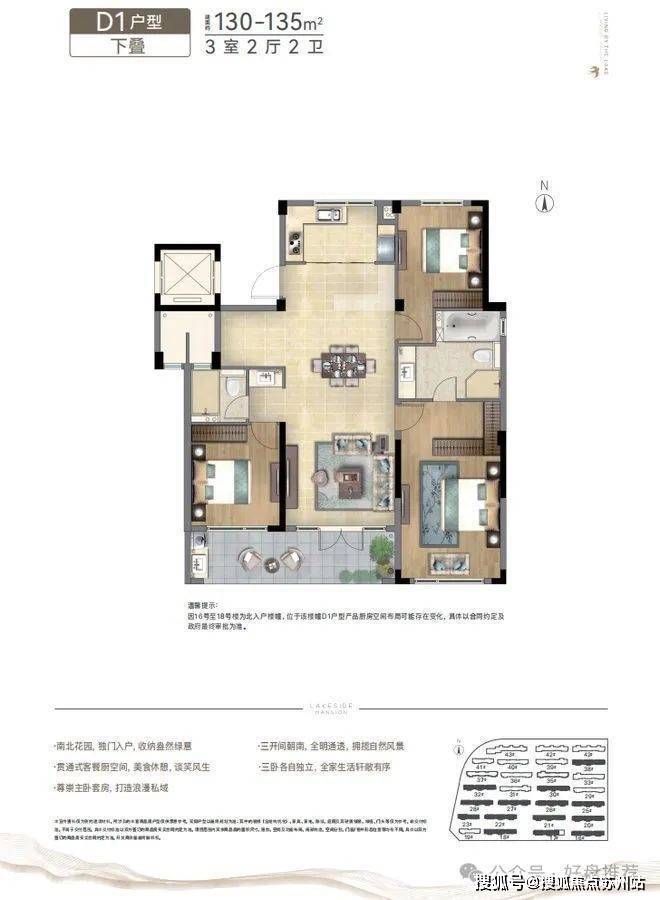 将新亚洲元素植入现代建筑语系,坡屋顶、深挑檐中式元素,采用大面蓝灰色LOW-E玻璃,大面宽、大开间、全明通透的湖景洋房,以“中央空调+新风系统+地暖”全系精装交付,诠释洋房生活的格调。