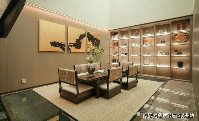 极简的线条强调出空间的自然与纯粹,巨幅落地玻璃将室内外的景致互相交融,作为业主专享的休憩与社交空间,可一边欣赏中央水院美景,一边与至交好友对坐倾谈,别有一番韵味。