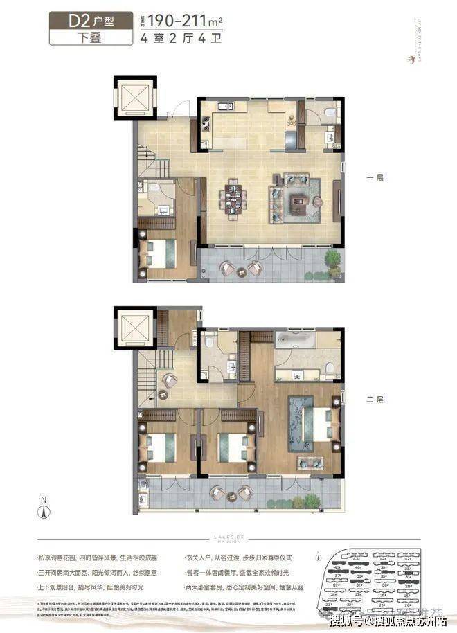 产品类型:包括建筑面积约 99-213㎡中式叠院以及建筑面积约 91-161㎡新亚洲洋房56;