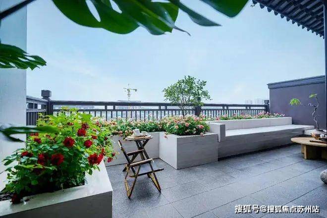 三层空中花园与室内客餐厅形成联动,无论是栽植瓜果花木,还是品茗、阅读、聚会,都是美好的“故事发生地”,花开时,还能邀朋友一起沉浸于“偶寄闲情阅繁花”的意境之中。