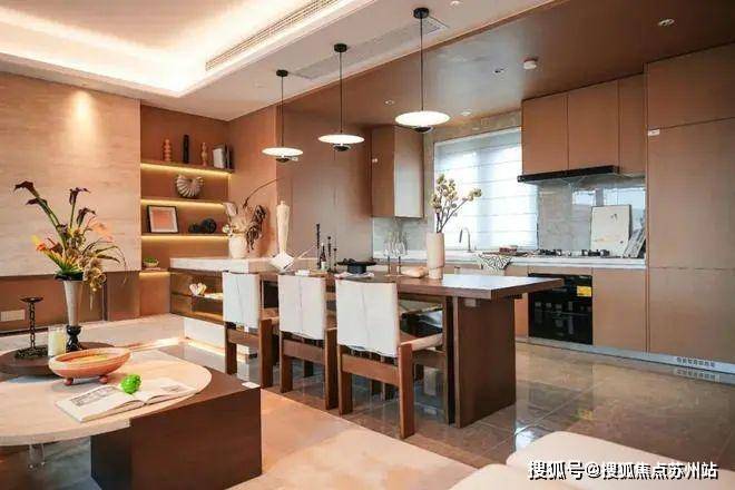 餐厅、厨房融为一体又各自独立,方便烹饪好的美味佳肴端上餐桌与亲友及时分享,进退间从容有序。