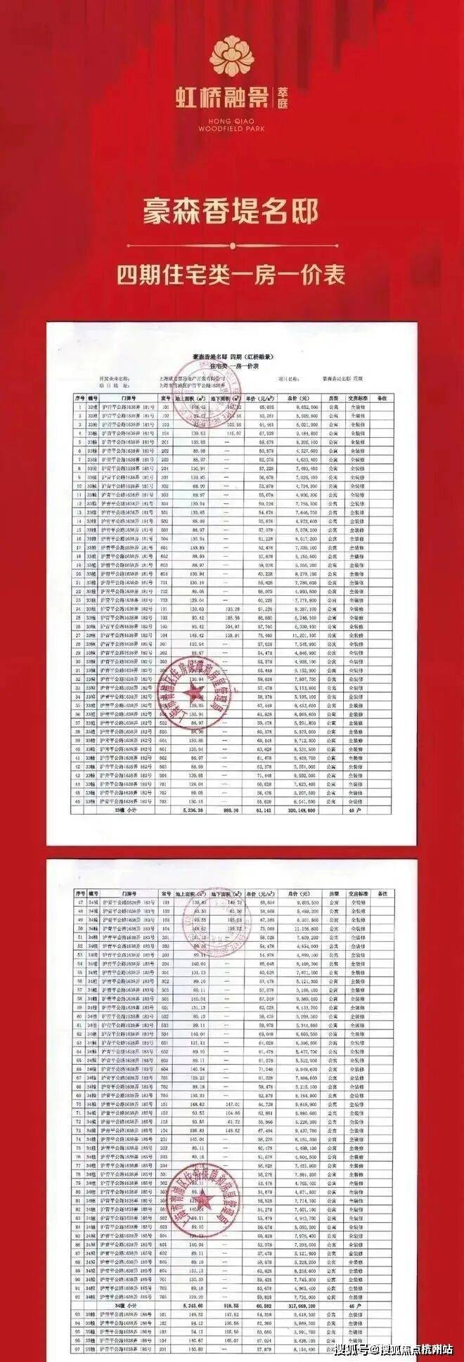 项目一房一价表