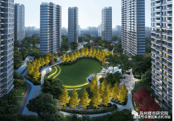 以中央景观客厅为中心,在主要归家动线上向四周延伸,打造了银杏林、乌桕林、榉树林、红枫林、河桦林、紫薇夹道、海棠夹道、樱花夹道等不同色系、不同季节的特色八大植物主题组团。