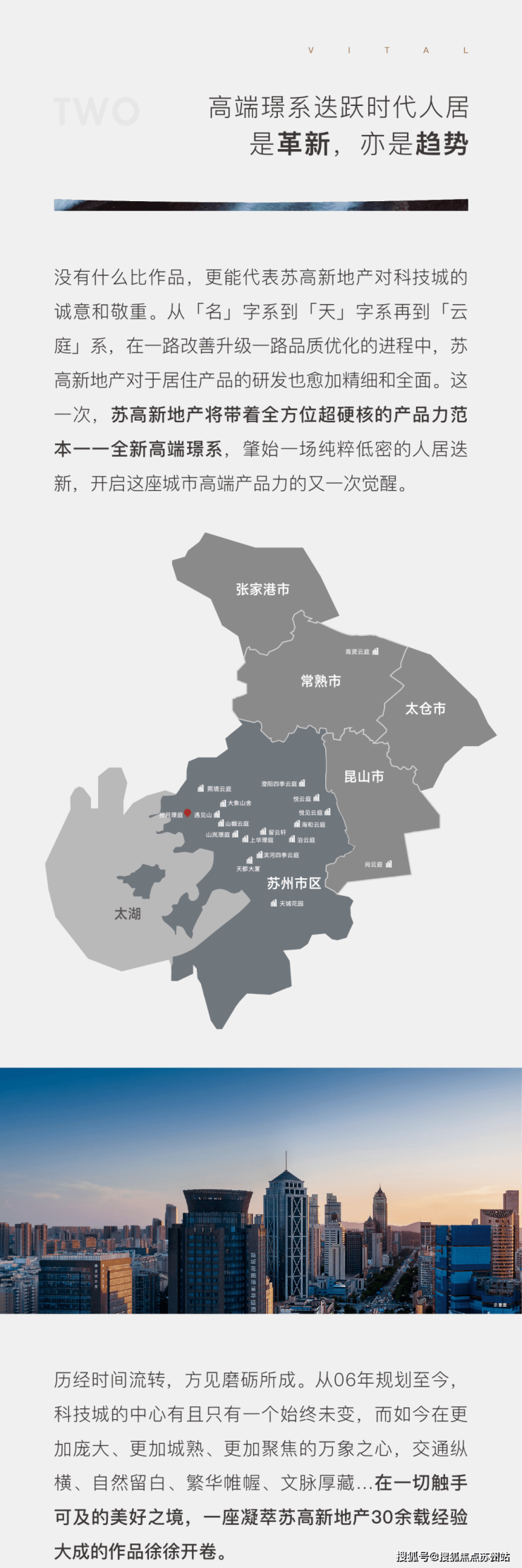 作为苏高新股份旗下的中流砥柱,苏高新地产自始植根于苏州高新区,发展成为涵盖地产开发、产城融合及城市配套设施建设的全能型城市运营商。企业立足本土,深化苏州市场,同时积极向外辐射,布局整个长三角地区,成功缔造了一系列高品质标杆项目,逐一兑现居民对美好生活的向往与期待。