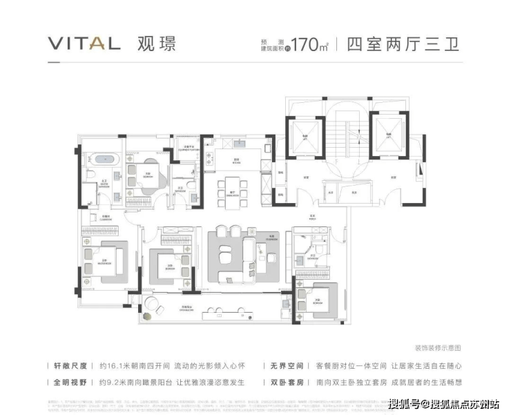 ◆约8000㎡核心景观轴、约2400㎡两个尊享庭院、南北各区设共享花园和私享花园。