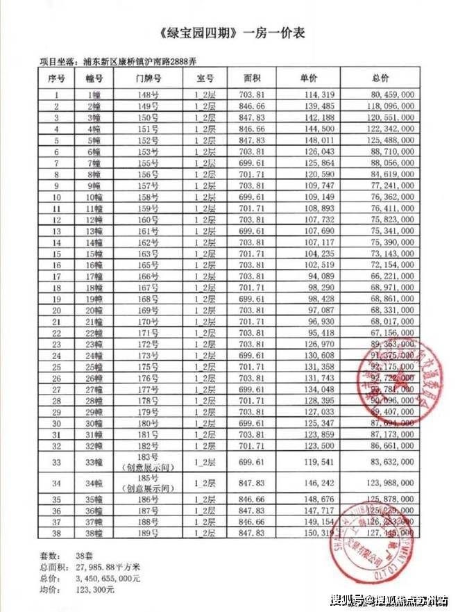 一房一价表: