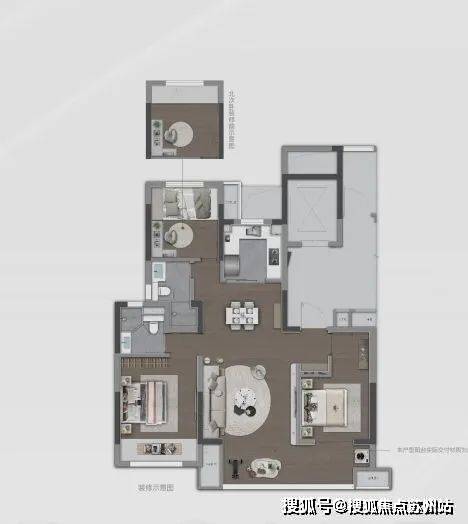 户型点评:比较方正的3房2卫设计;独立电梯入户,私密性高;南向约6.2米双联阳台;主卧套房设计,带明卫;