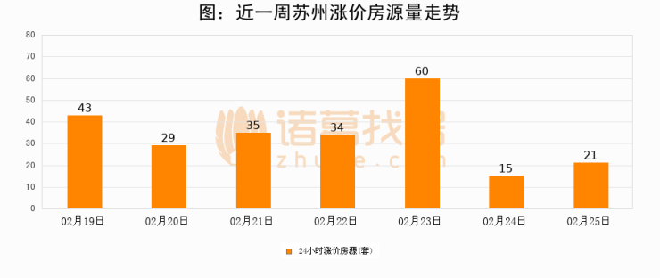 根据诸葛找房数据显示,苏州24小时涨价房源量为21套,较02月24日增加6套,环比上涨40%。与此同时,涨价房源占比小幅扩大,业主信心有所提升。