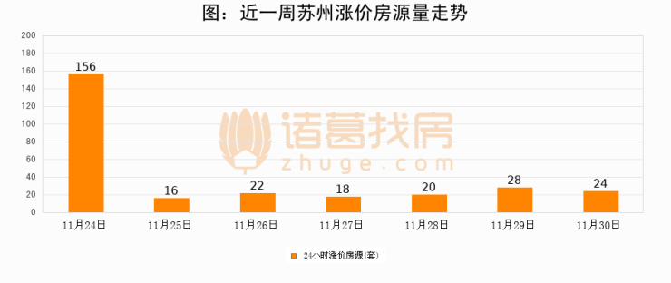 根据诸葛找房数据显示,苏州24小时涨价房源量为24套,较11月29日减少4套,环比下降14.3%。与此同时,涨价房源占比小幅回落,对于购房者来说是一个入市窗口期,购房者可抓住时机入市。