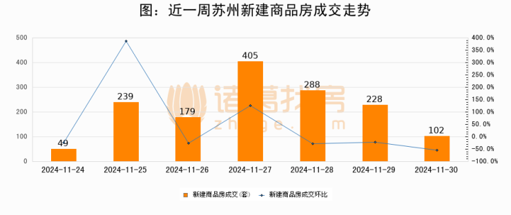 【苏州成交日报】11月30日新房成交102套、二手房54套;涨价房源24套