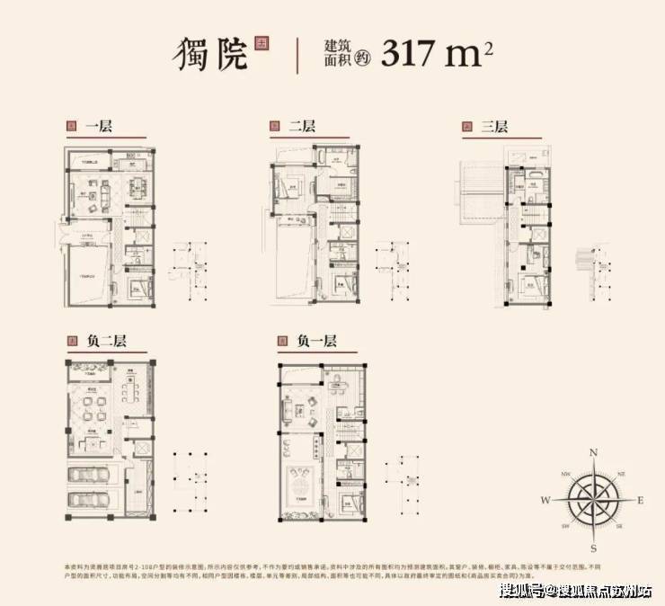 面积约317平的合院,地上三层,地下两层,整体为”L型“布局。
