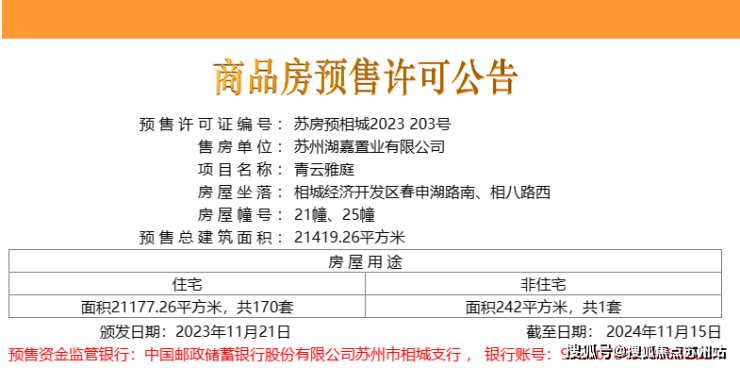 苏州园区(龙湖青云阙)售楼处电话400-8828-814【售楼中心】21#、25#170套住宅房源取证,全装修交付,备案单价区间在26896-34738元/平,备案均价为31535元/平,是龙湖青云阙第四批次取证房源。