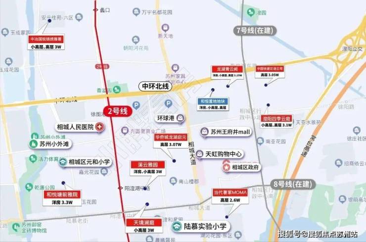 交通上面来看,北面就是中环北线,往东连接澄阳立交,可以联通苏州北站高架路和阳澄湖大道,去往青剑湖也是比较方便。