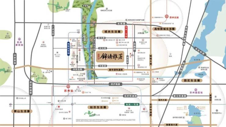 择址相城正芯,坐拥双水岸 锦绣雅著的位置相当不错,就在相城元和的核心地段。小区旁边就是风景优美的元和塘滨河风光带,还把水景引入了社区里面,打造了一个约21万方的低密水岸洋房住区。在城区中心能享受到两条水岸的风景,非常难得。