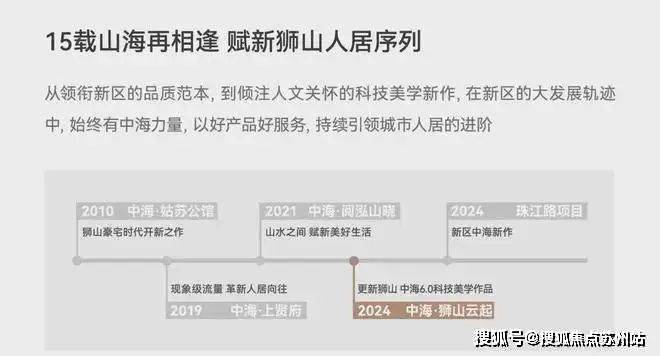 从领衔新区的品质范本,到倾注人文关怀的科技美学新作,在新区的大发展轨迹中,始终有中海力量,以好产品好服务,持续引领城市人居的进阶。2024中海际遇狮山,锚定如此精粹之处,将全新生活向往就此落笔。