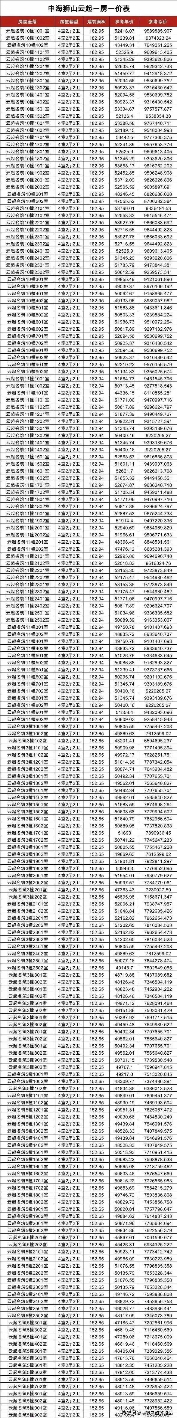 一房一价表如下