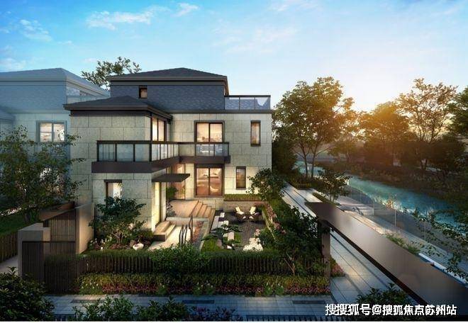 【上实·和风院】建筑外观是新中式格调,以黑色面瓦为黛顶,整体线条简洁明快。