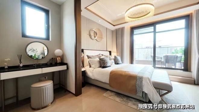 该户型二楼南向卧室有多面采光,这在上海极为少见。超长露台连接起两个卧室,如果家里有两个孩子,各自一个卧室,共通露台供其玩耍,别提有多开心。