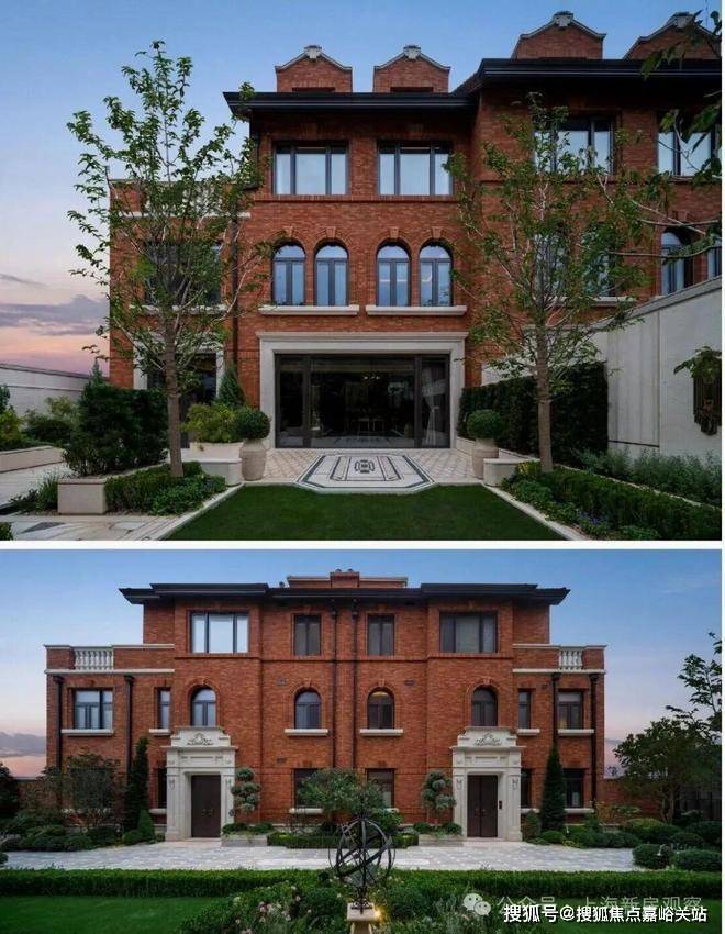 建筑基层石材选用近拟传统皇家建筑所用金山石的世贸金麻,经手工凿毛、酸洗做旧处理,搭配铜质落水管、水纹压花玻璃,每一处细节都在诉说海派大宅的优雅与贵重。