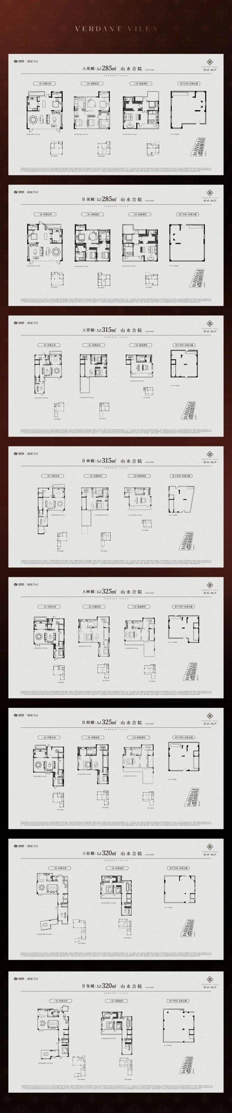 绿城樾庐本批次房源取证的产品是4F叠墅和3F合院,户型面积在203.11-324.8平。官方户型如下: