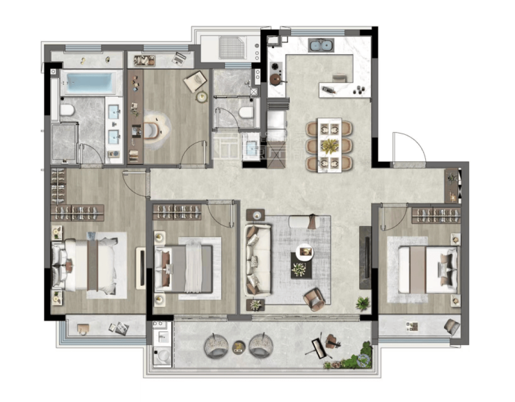 所有户型均采用方正格局与动静分区设计,确保三代同堂互不干扰,空间利用率高