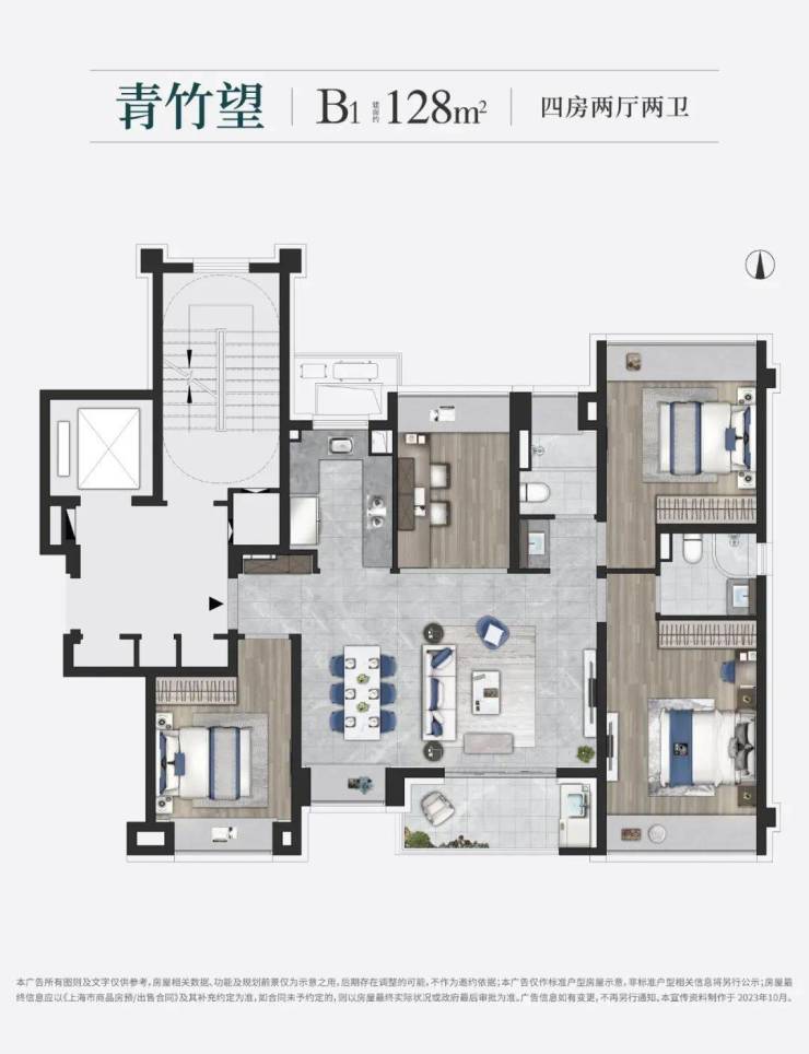 如果家庭有二孩或者三代同堂需要的,那建面约150㎡的四房大平层一定要优先加入您的“购物车”,标准的“大面宽短进深”的黄金户型格局,直接让人竖起大拇指: