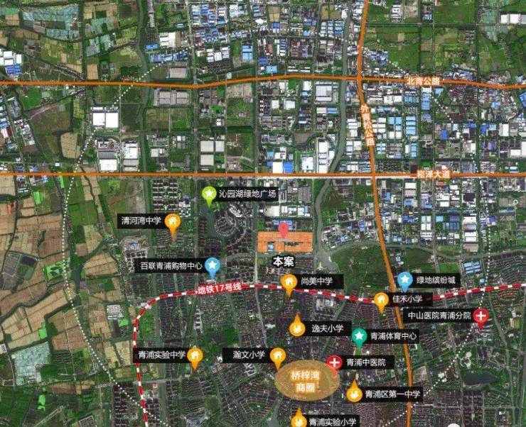 交通方面:项目距离17号线漕盈路站步行约1.4公里左右,一站可达青浦新城站,且后者未来将是拥有“三轨汇交”:沪苏嘉城际线(上海示范区线)嘉青松金线、轨交17号线将同站换乘。