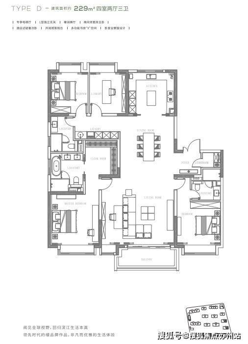 这是项目收官之作,推出的2栋楼,分别是12、16小高层,位于小区第一排,景观视野佳,俯瞰风貌别墅区。尤其是209㎡四叶草格局的王炸户型,独立电梯厅、国际一线精装、双会所、约3.5万方园林景观、无边际服务、自带约10万方合生汇商场配套,约500米一线临江。