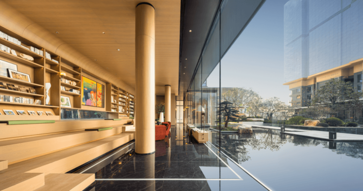 往里走,您会踏入一个立体的、全境洄游的园林。下沉庭院、镜面水院、阳光草坪,以多维垂直的角度,诉说着生活与风景的立体交融。