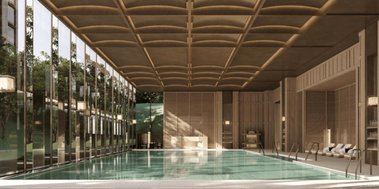 大面积的通透玻璃,让阳光与绿意自由流淌。专业的设备与静谧的氛围,旨在打造一个都市中难寻的身心修复站。在此舒展身体,仿佛与约3500㎡下沉式庭院、约13m垂直落差的自然园林同呼吸,实现从身体到精神的双重疗愈。
