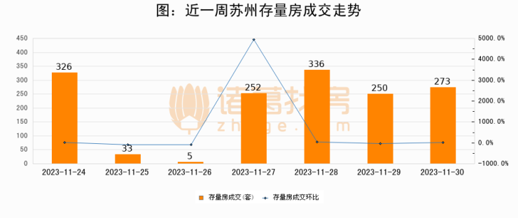 从存量房来看,2023年11月30日苏州存量房单日成交273套,比昨日增加23套,环比上涨9.2%。从近一周存量房成交来看,苏州存量房日均成交套数为210套,11月30日单日成交273套,高于近一周平均水平30%。