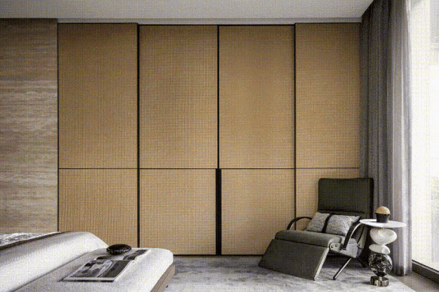 次卧的色调相对更为深邃,设计师通过不同的色彩选择,为静谧的氛围赋予了别样的诠释。有的空间明亮温暖,有的则内敛深沉,各种高品质材料相互搭配,编织出柔软而舒适的触感,再辅以恰到好处的艺术装饰,将空间的高级感提升到新的高度。