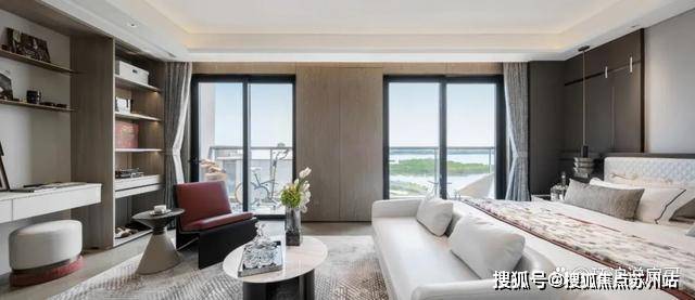 阳台则采用 大面玻璃栏板及玻璃落地移门,让视野开阔无遮挡的同时又能够实现景观最大化,让室内看起来更加敞亮。