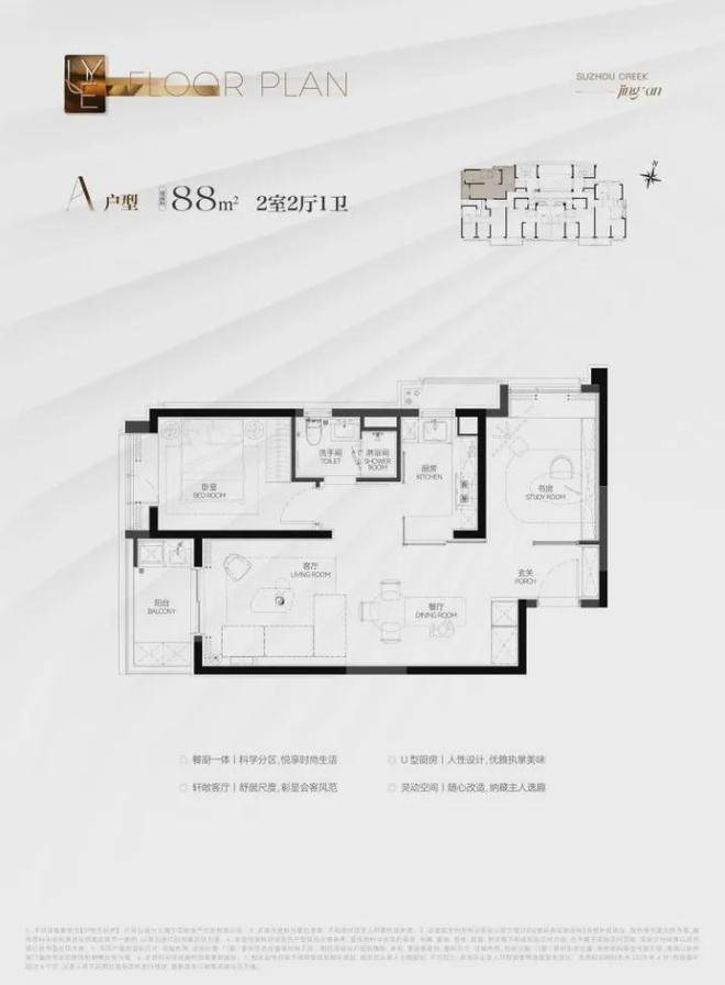 建筑面积约88㎡2房A户型