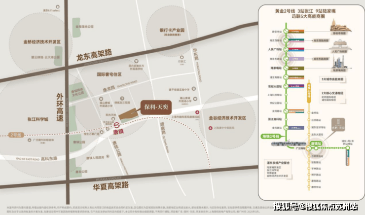 2、无短板的资源配套,眼见为实的确定性:保利天奕与2号线唐镇站直线距离仅150米,是真正的正地铁盘,占据唐镇核心位置,坐拥商业、教育、地铁、绿地优质配套。