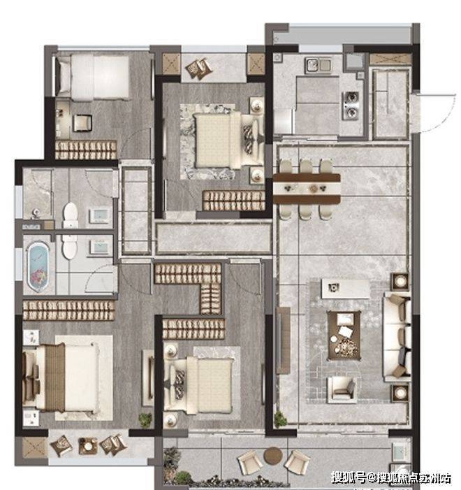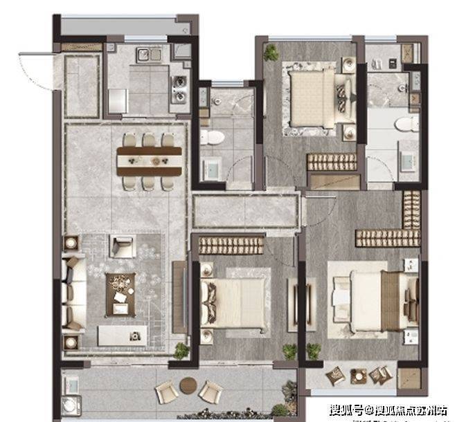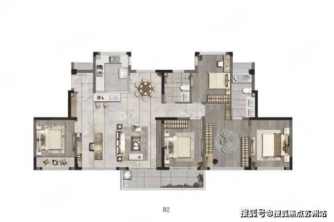 苏州相城区河岸晓风下叠216㎡户型图:(四室两厅三卫)
