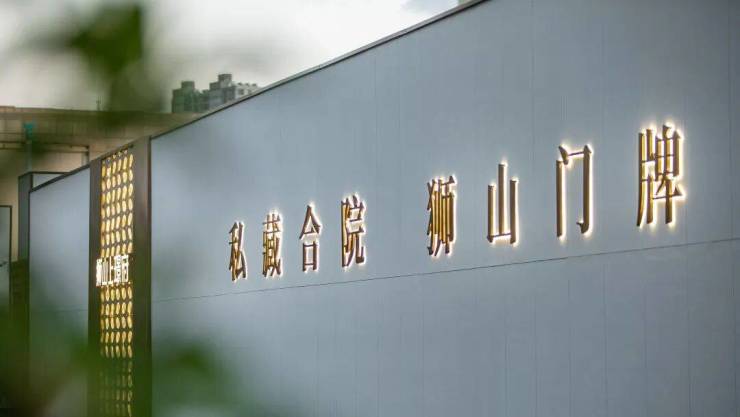 不同于以往简单的项目展示,新围挡以“院藏狮山+私藏合院”为核心主题,传递出低密社区的静谧感——浓荫掩映下的建筑轮廓、庭院里的光影细节,隐约透露出项目对生活场景的打磨思路,而非单纯强调建筑本身。