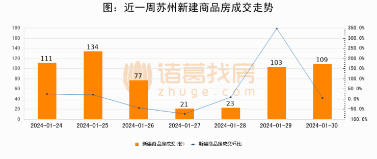 【苏州成交日报】01月30日新房成交109套、二手房233套;涨价房源152套