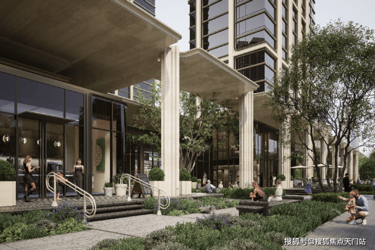 底层商业摒弃传统密集布置,以“非标化”方式营造“类公园化”的烟火街区,咖啡驿站、休闲商业、社交花园点缀其间,让街区充满温度与活力。
