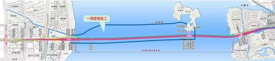 环洲路:与星湖街交叉口西侧封闭,通过南侧交叉口进出;施工期间搭设便桥保证双4车道规模;半岛华府南区在星湖街东侧开设临时进出口。