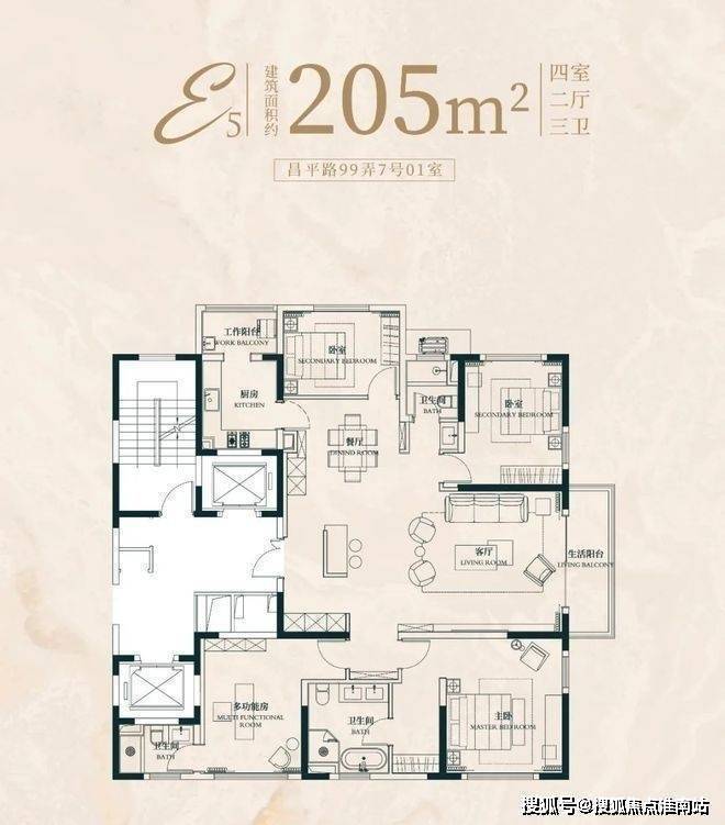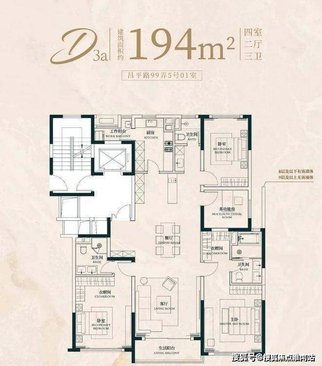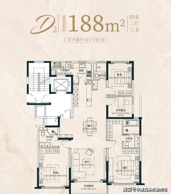 建面约183㎡4房2厅2卫户型:昌平云岸售楼处电话:400-8818-994