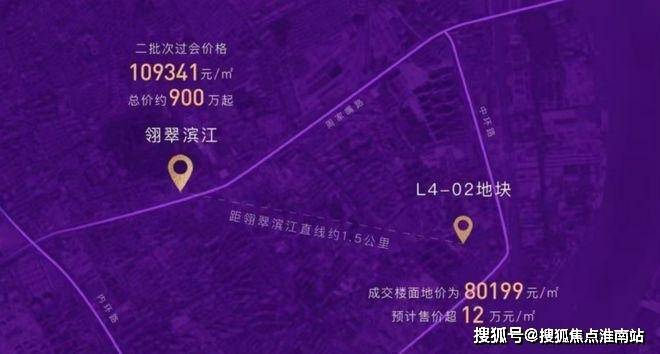 新土拍的地块,预计售价12.5万+/平,它与翎翠滨江的直线距离只有1.5km;