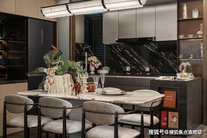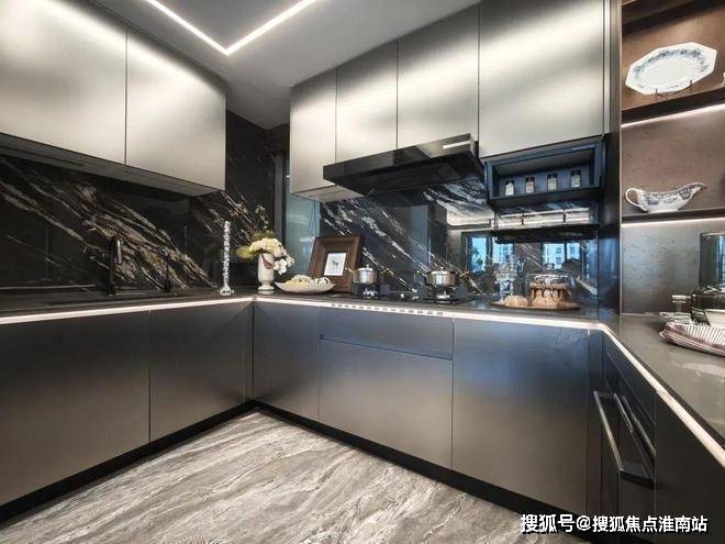 翎翠滨江售楼处电话☎:400-8818-994【预约☎】上海杨浦翎翠滨江售楼处电话☎:400-8818-994(预约看房)厨房采用U型动线,操作空间比较足,石英石的台面,柜体用了比较时尚的金属色泽材料,整体更具通透性和科技感。厨房北向利用赠送飘窗设置约650深度的加宽台面,定制了古驰黑岩板!翎翠滨江售楼处电话☎:400-8818-994【预约☎】