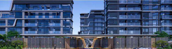 小区归家大门约100米的超级界面,选用45米的宽奢石铺装门头串联起流转水景,蓝翡翠镜面奢石,搭配范思哲黑定制水景,更显尊崇。
