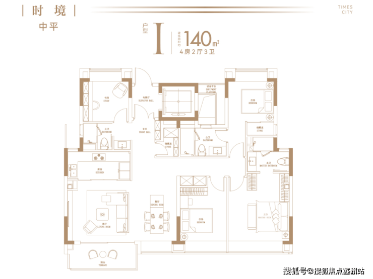 以建面约142㎡下叠为例,地上两层、地下一层阔绰空间,动静科学布局,全面考量三代同堂与二胎家庭的居住空间需求,以人性化质感空间演绎舒奢生活。