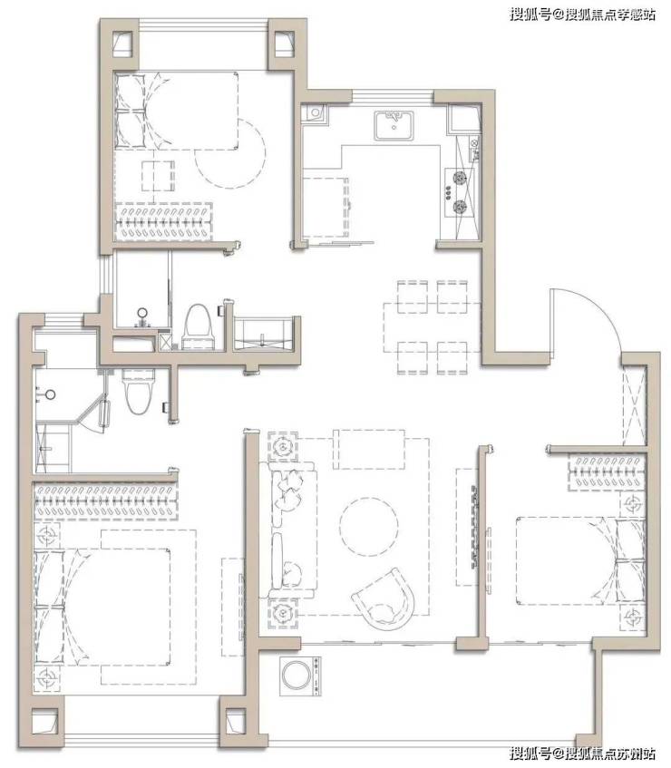 建面约100㎡是个典型的飞机户型,全明户型南北通透,独立玄关实用美观,几乎无过道浪费,延伸了空间的尺度。