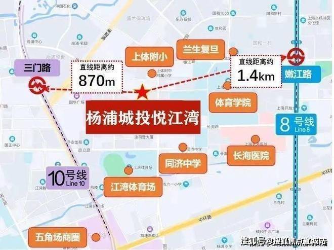 交通方面:双轨环绕,项目距离到10号线三门路站直线约870米,8号线嫩江路站直线距离约1.4公里,