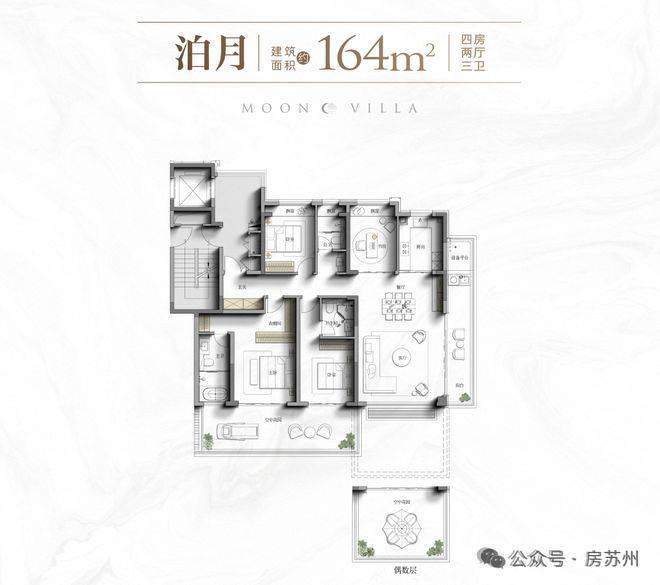 上叠建面约176㎡,客厅挑高,南北双露台+星空屋顶露台。苏州吴中中铁咏月台售楼处电话:400 8123 664 (预约看房热线)