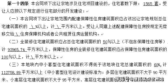 根据项目建设需求:地块规划住宅下限1565套,地块要求一半全装修,中小户型比例为60%以上,装修集采标准为2500元/平。