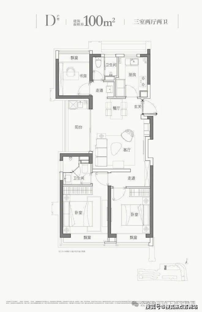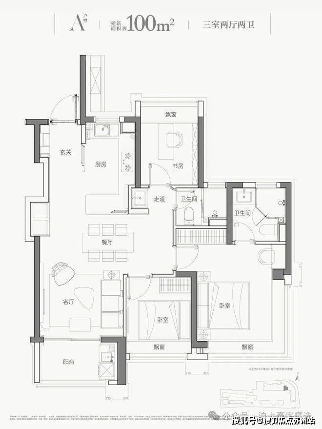 平层建面约102㎡三房